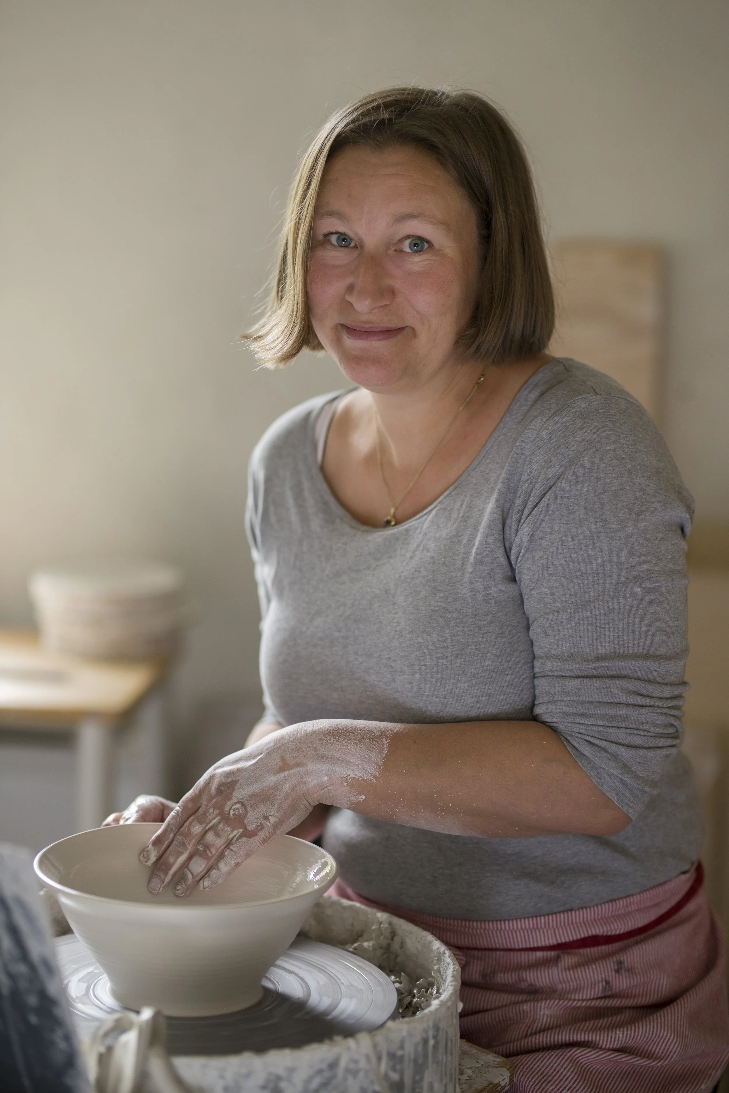 Fra 2000 til 2002 gikk jeg i lære og tok svennebrev i pottemakerfaget hos Torgeir Leander Henriksen på Røros. Siden da har jeg spesialisert meg i porselensleire, men jeg arbeider også i steingodsleire. Hvilken leire jeg arbeider i avhenger av hvilket uttrykk jeg vil ha.